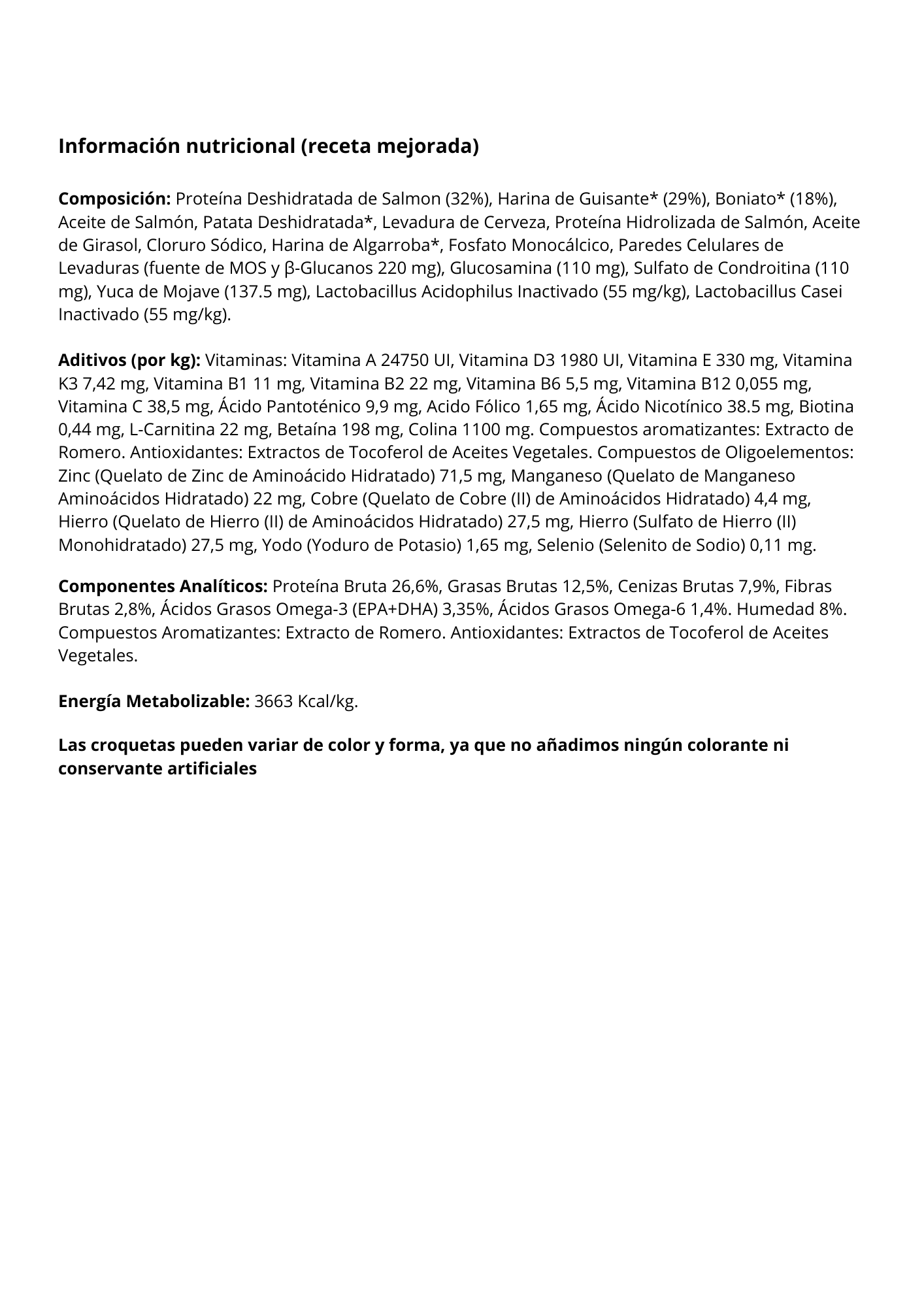 Este pienso natural para cachorros de salmón es rico en ácidos grasos esenciales Omega 3, que favorecen el desarrollo de un buen estado inmunológico, protegen las articulaciones y la salud cardíaca y circulatoria, y ayudan a crecer con una piel sana y un pelaje brillante. Además, su dieta balanceada previene y controla la obesidad y promueve el crecimiento de huesos fuertes. Su alto contenido en antioxidantes proporciona energía y vitalidad para tu cachorro. ¡Sin subproductos y altamente digestible para una salud óptima!